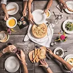 Hosté si mohou vychutnat bezplatnou bufetovou snídani v restauraci.